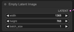 - Purpose: Creates an empty latent space (a compressed image representation) to define the output’s size and batch before generation.