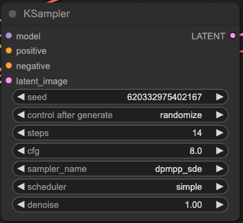 - Purpose: The core node that generates content by refining random noise into a coherent image (or other output) based on the model and prompt.