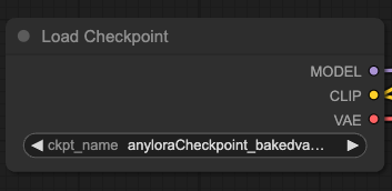 - Load Checkpoint → Outputs MODEL, CLIP, VAE.