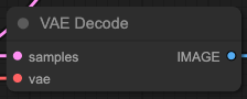 - VAE Decode → Takes LATENT and VAE; outputs IMAGE.
